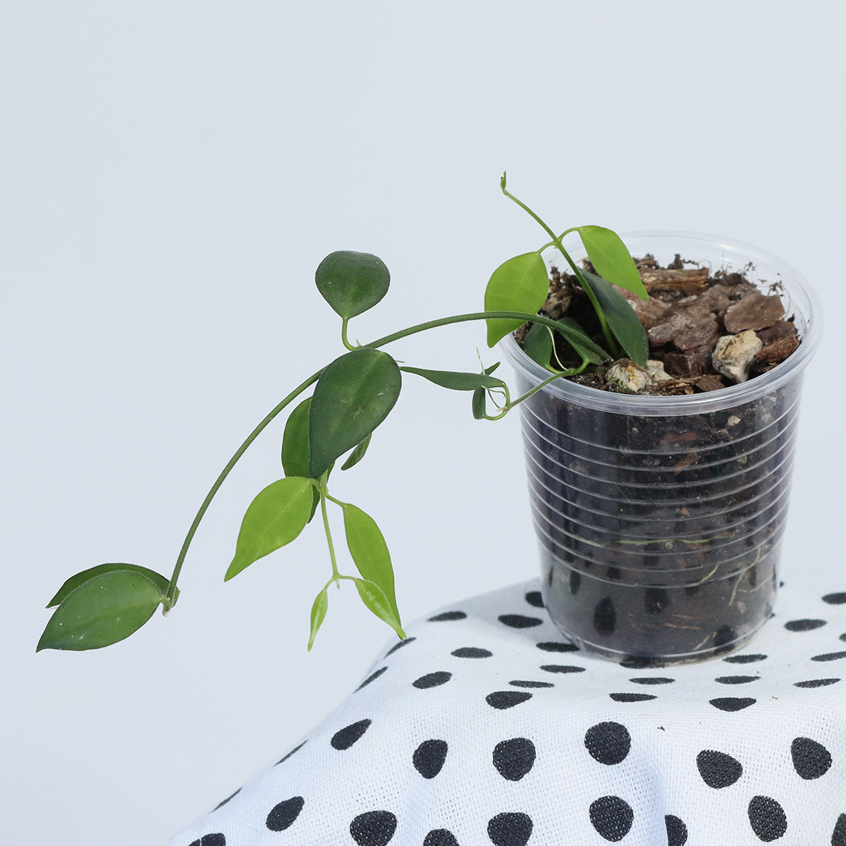 En liten och graciös Dischidia som blir vacker både hängande och klättrande. Starkväxande och tåligare än vad den ser ut. Blommar rikligt och lätt med små lila blommor. Denna klon säljs även som Dischidia livida.