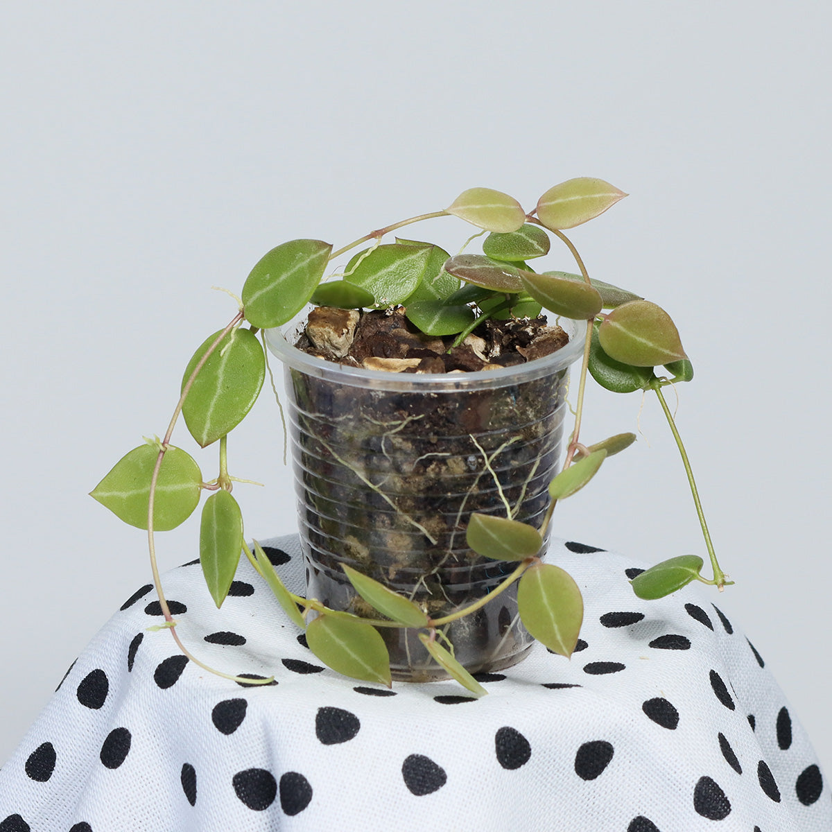 En liten form av Dischidia ovata som endast får en vit strimma längs bladen. Bladen är små och blir väldigt suckulenta med tiden. Kan bli ljust röd och skifta i rött och grönt i gott ljus. Lättodlad men tar oftast några år på sig att blomma.