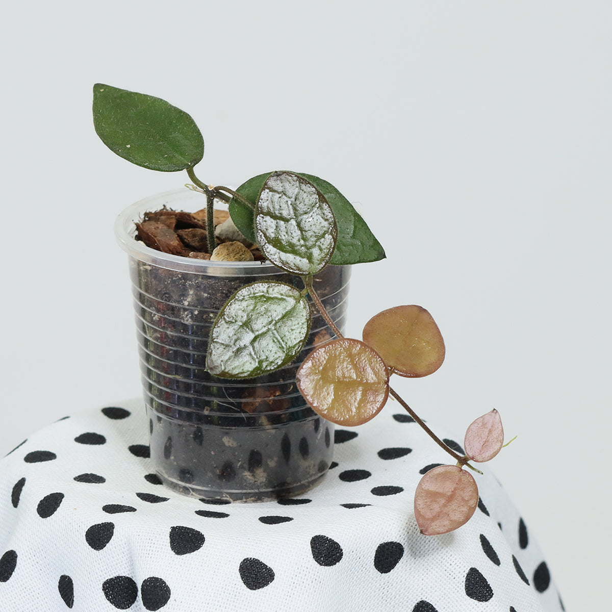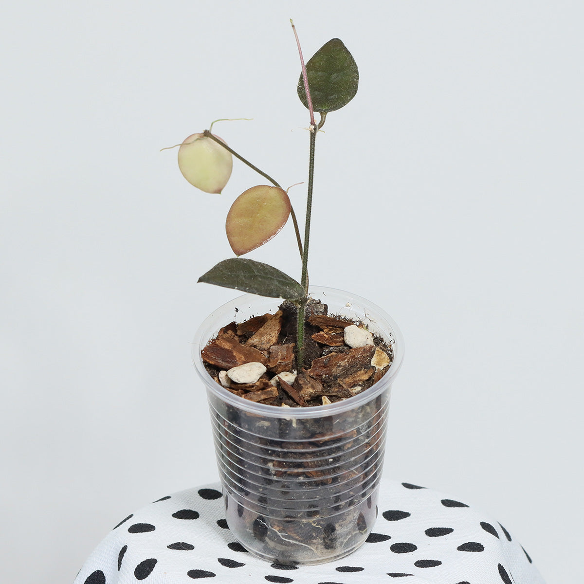 En vacker Dischidia som med stor sannolikhet är en hirsuta-klon. Bladen blir stora och får en fin nervad yta. De är mörkgröna och får en vacker mörk röd ton om den odlas ljust. Växer bra och sätter tidigt blomställningsskaft.