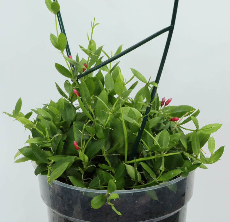 En liten Dischidia som får omväxlande små, avlånga blad och omväxlande säckblad. Växten lever i symbios med myror i naturen och myrorna bor i säckbladen. Får rikligt med små rosaröda blommor och fröskidor eftersom den självpollinerar ofta.