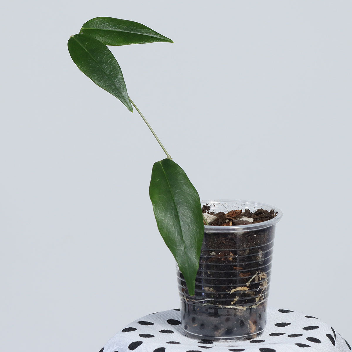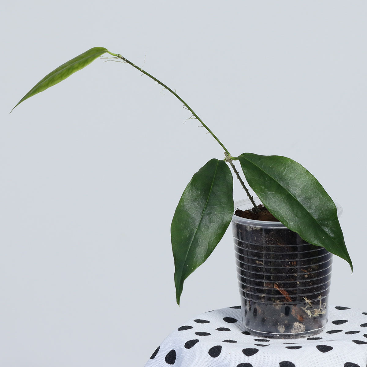 En helt fantastisk Hoya som är ganska ny i odling. Tunnbladig och växer omväxlande med fallande och klättrande rankor. Blommar tidigt och rikligt med stora, ljusa blommor som doftar citrus. Blommorna har en hårig frans längs kanten som ger dem en härlig gloria. Lättodlad.