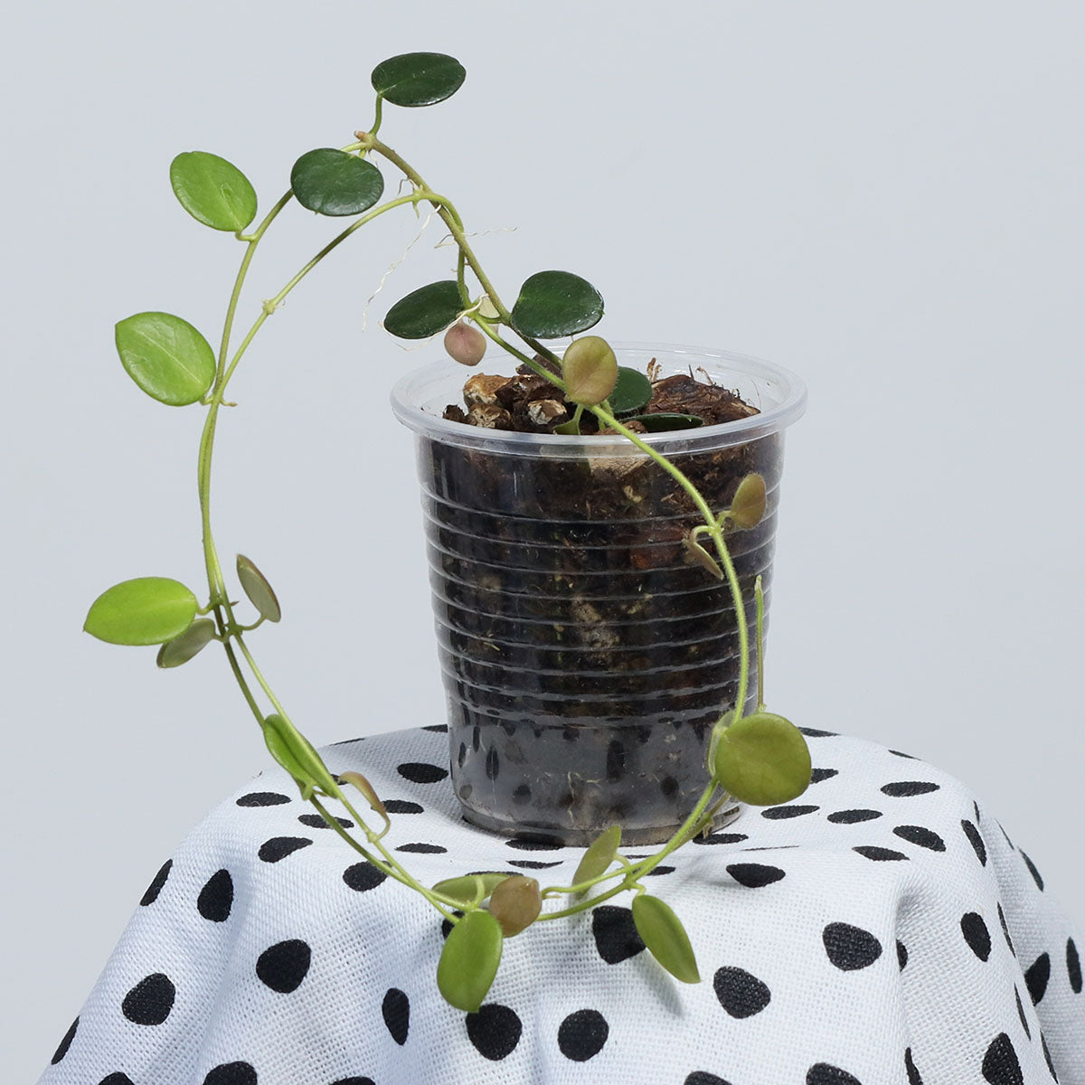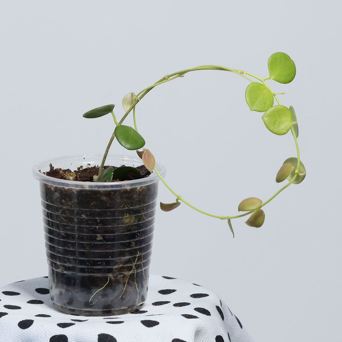 En annan klon av arten med de små, stjärnformade blommorna från Papua. Den här klonen utmärker sig genom lite blekare blommor och blad som blir nästan helt runda jämfört med den klon som jag säljer som Hoya sp. Papua. Även den här klonen växer snabbt och blommar gärna tidigt med kraftigt doftande blommor. Anspråkslös storleken till trots.