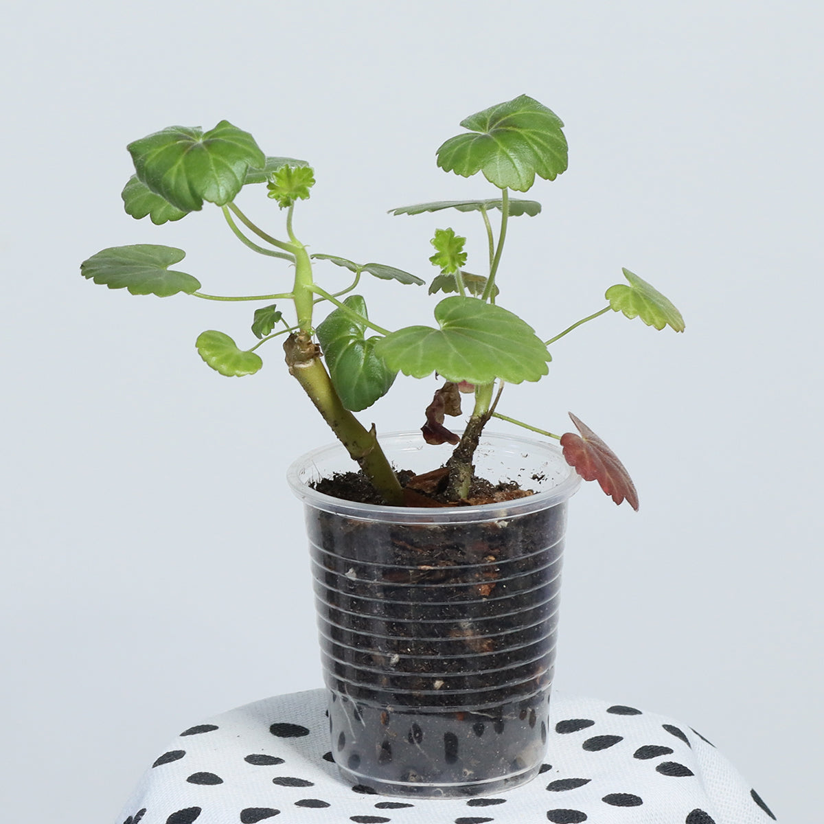 En av få pelargoner jag sparar över vintern. Får oerhört mörka och svarta blad i gott ljus. Blommorna är enkla och ljusrosa med de två översta kronbladen lite mer färggranna. Kontrasterar väl mot bladverket men denna tycker jag odlas främst för bladens skull. Dvärgväxande.